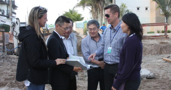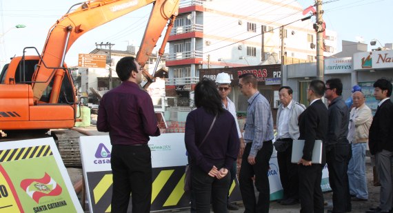 Depois de vistoriar as obras do sistema e esgotamento sanitário em Barra Velha, comitiva da Agência Japonesa de Cooperação Internacional (JICA) que está no Brasil realizou nesta quarta-feira (12) visita técnica à implantação de rede coletora na Avenida Leopoldo Zarling, em Bombinhas.