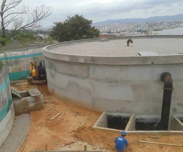 Obras de ampliação do Reservatório da rua Irineu Comelli em fase final. Localizada no Centro de São José, a unidade passa a ter capacidade de armazenar mais 1 milhão de litros de água, totalizando uma reserva de 3 milhões de litros para a região. Serão beneficiados moradores de parte do Centro Histórico de São José, Fazenda do Santo Antônio e Ponta de Baixo. Foto: Gerência de Construção
