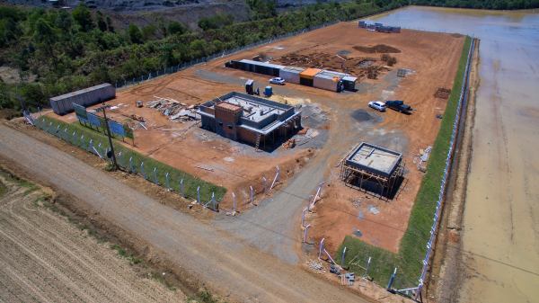 Imagens aéreas do local de construção da ETE Forquilhinha. Acervo CASAN