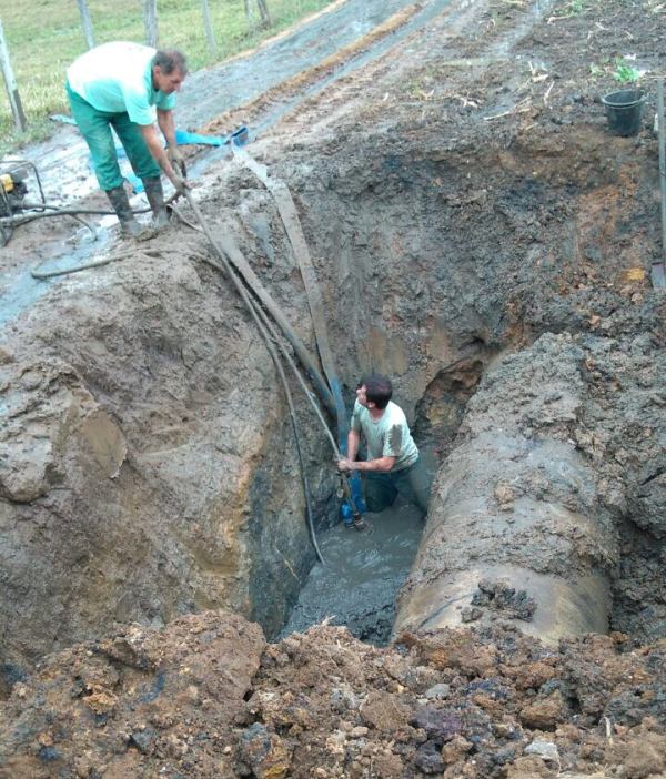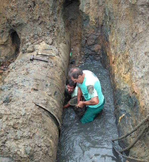Um conserto complexo, realizado em meio a lavouras de arroz, evitou que pelo menos 300 mil pessoas fossem afetadas pelo desabastecimento de água durante a semana na Grande Criciúma. Depois de avaliada e planejada por equipes da Superintendência de Negócios Sul-Serra e da Agência de Criciúma, a operação de campo para conserto foi realizada quarta-feira e quinta-feira, dias 2 e 3, por André Cechinel Bergmann, Antônio Donadel e Márcio Cipriano de Souza, profissionais do Setor Operacional de Água da Agência de Criciúma, além de Juliano Oliveira da Silva, chefe do Seopa/Criciúma.