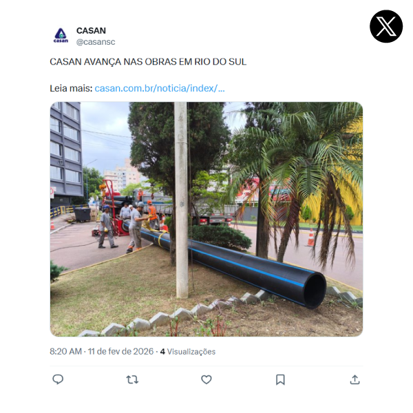 A CASAN (Companhia Catarinense de Águas e Saneamento) inicia a partir da próxima segunda-feira (16), uma obra para a substituição de tubulações da rede de ...