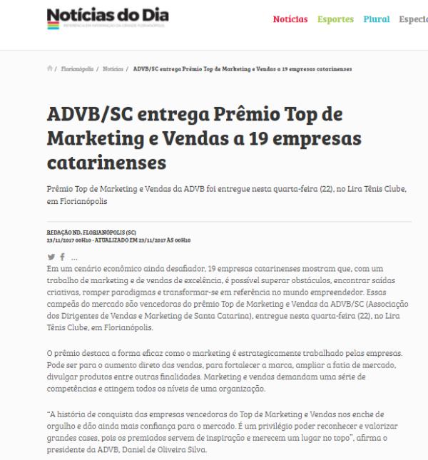 Em um cenário econômico desafiador, 19 empresas catarinenses mostraram que é possível superar obstáculos, encontrar saídas criativas, romper paradigmas e transformar-se em referência no mundo empreendedor", disse o empresário Daniel de Oliveira Silva, presidente da Associação dos Dirigentes de Vendas e Marketing de Santa Catarina, no discurso que abriu a cerimônia.