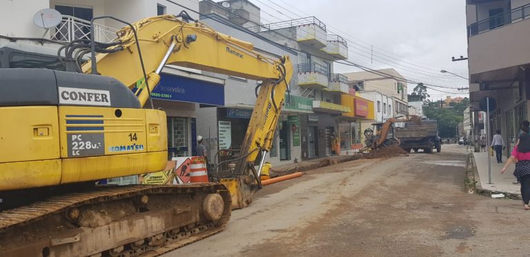 Após receber rede de saneamento, área central de Lauro Müller é preparada para repavimentação