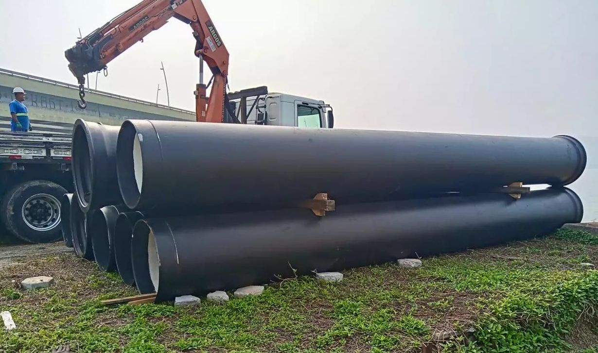 Início da instalação de uma nova adutora de água tratada na região da Ponte Pedro Ivo Campos.