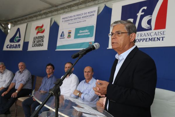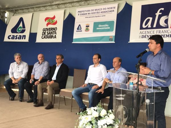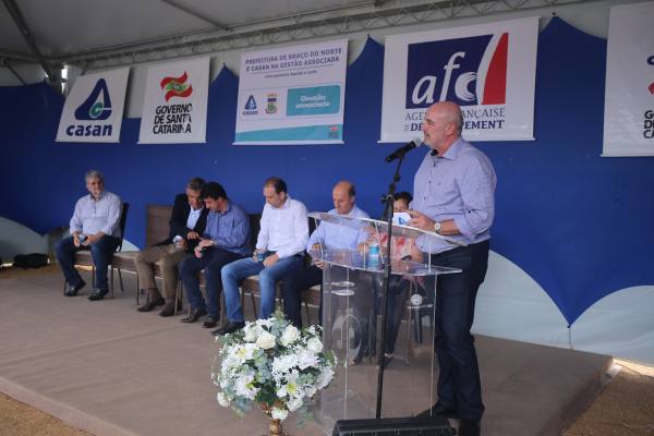 “Estamos aqui para dizer que a cidade que acreditou na CASAN tinha razão: hoje Braço do Norte recebe uma linda e eficiente estação de tratamento que vai garantir mais saúde e qualidade de vida para a população local. E estamos também ampliando os sistemas de água do município”, disse o presidente da Companhia, Valter Gallina, que há um mês recebeu o título de cidadão honorário de Braço do Norte, e se dirigiu a todos como "conterrâneos".