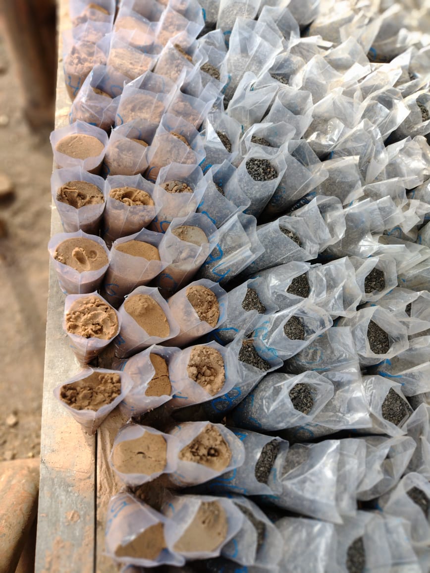 Para perfuração do poço profundo, a cada 2 metros são retiradas amostras para avaliação geológica do basalto e da areia do aquífero.