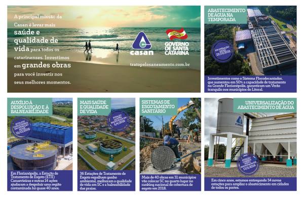 Culminando com a bem-sucedida Operação Verão 2017, que garantiu tranquilidade ao abastecimento de água nos principais pontos turísticos do Estado, a CASAN está veiculando na imprensa catarinense a campanha publicitária "Melhores Momentos".