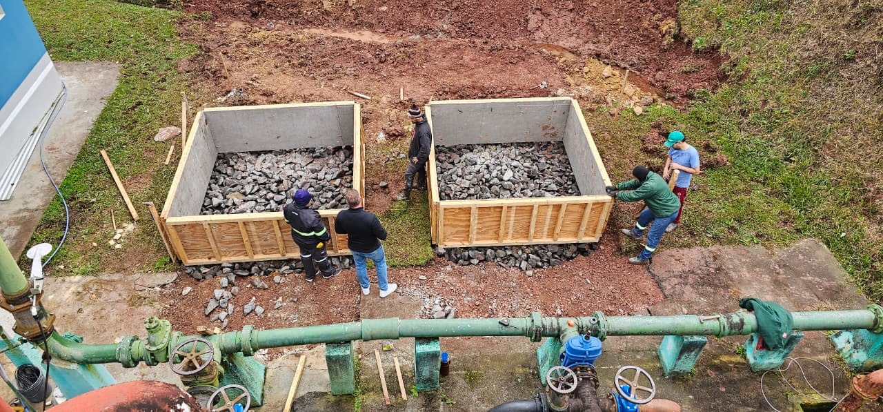 "Nesse momento, instalamos os dois novos filtros de filtração ascendente, para trazer mais eficiência na remoção de partículas da água bruta. Agora, estão em andamento a construção de bases em concreto armado, a implantação de novo sistema de drenagem no local e a pintura das estruturas antigas da ETA", explica o chefe de Agência, Thiago Correa Neves.