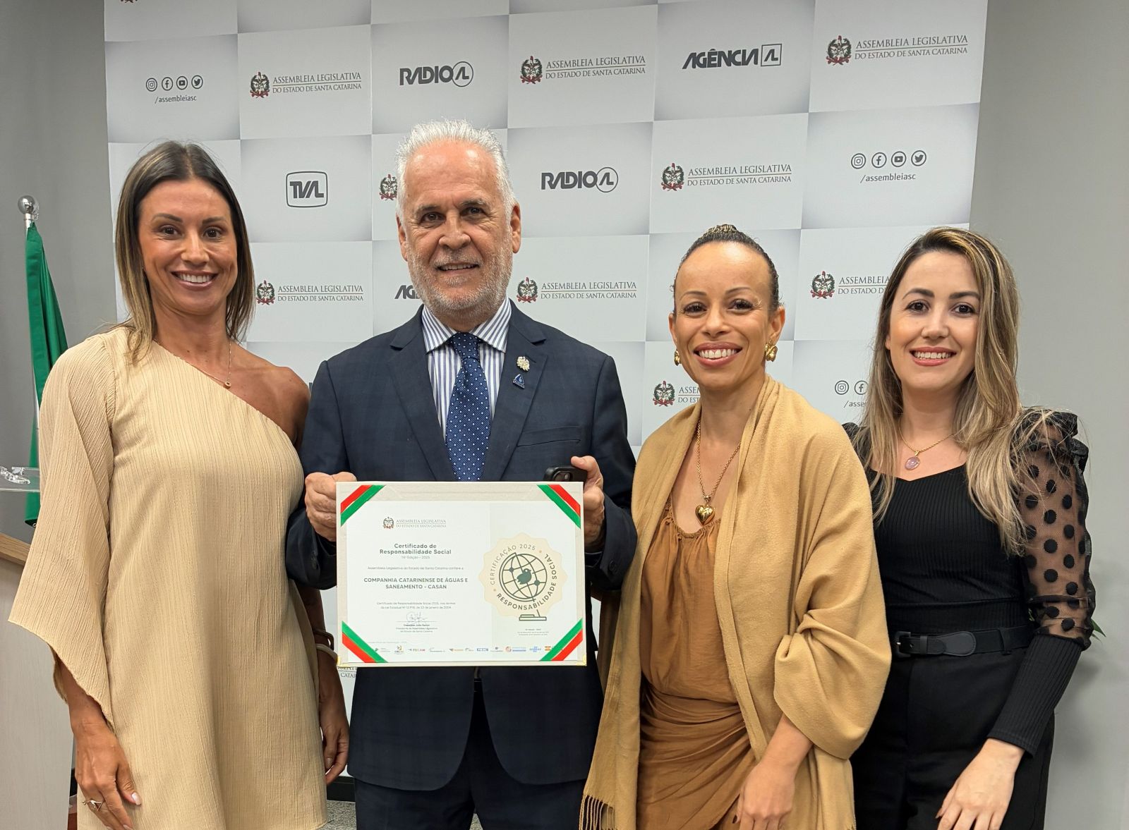 A CASAN (Companhia Catarinense de Águas e Saneamento) recebeu pela terceira vez o Certificado de Responsabilidade Social da Assembleia Legislativa de Santa Catarina (ALESC). A certificação reconhece empresas públicas, privadas e organizações que praticam a sustentabilidade nas políticas internas.