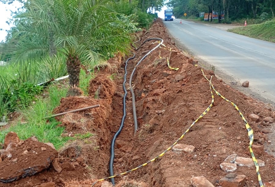 As obras estão sendo executadas entre a ponte sobre o rio São Domingos, na divisa com o município de Palmitos, até a entrada da cidade, no ponto de interligação com a Rua Machado de Assis. Além de ser renovada e ampliada, a nova rede será instalada no passeio da rua, o que traz o benefício de facilitar manutenções nos casos de vazamentos, evitando interrupções no transito.