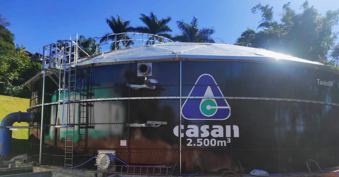 A CASAN (Companhia Catarinense de Águas e Saneamento) executa nesta quinta-feira (21) a interligação do novo reservatório instalado no Bairro Janaína, em Biguaçu. Com capacidade para 2,5 milhões de litros de água, o investimento na unidade foi de R$ 4,3 milhões.