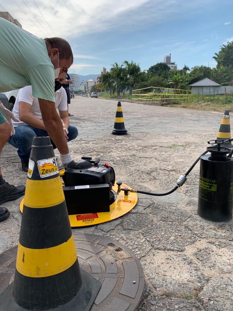 Com apoio da Vigilância Sanitária, do Serviço de Operações de Esgoto (SEOPE) de São José e com um funcionário da agência local, a CASAN está realizando também Testes de Fumaça, que ajudam a identificar eventuais irregularidades nas redes de esgotamento sanitário ou na drenagem pluvial.