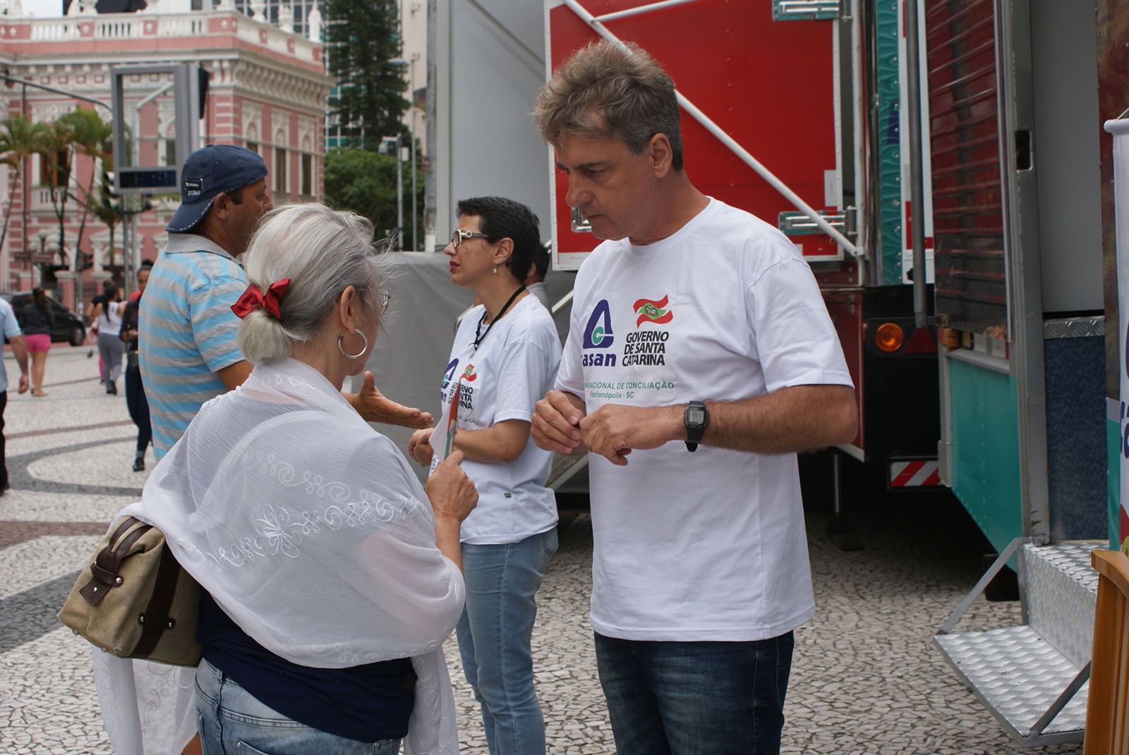 Foto: participação da Empresa acontece nas negociações no Fórum e na prestação de informações na Praça XV. (Bruna Hoffmann Pereira/CASAN)