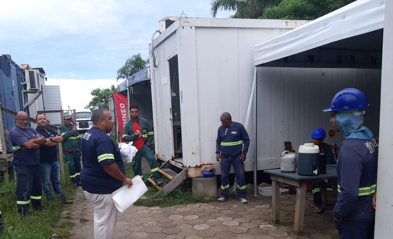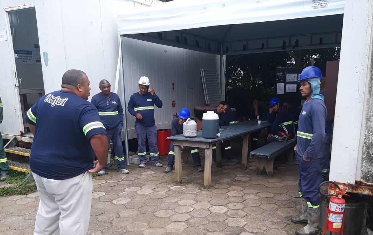 Mais um treinamento com os trabalhadores das obras de ampliação e modernização da Estação de Tratamento de Esgoto Insular da CASAN (Companhia Catarinense de Águas e Saneamento) foi promovido nesta semana. No encontro, foram discutidos os procedimentos para o atendimento emergencial a incidentes ambientais com produtos perigosos, como óleos, solventes, lubrificantes, tintas e impermeabilizantes
