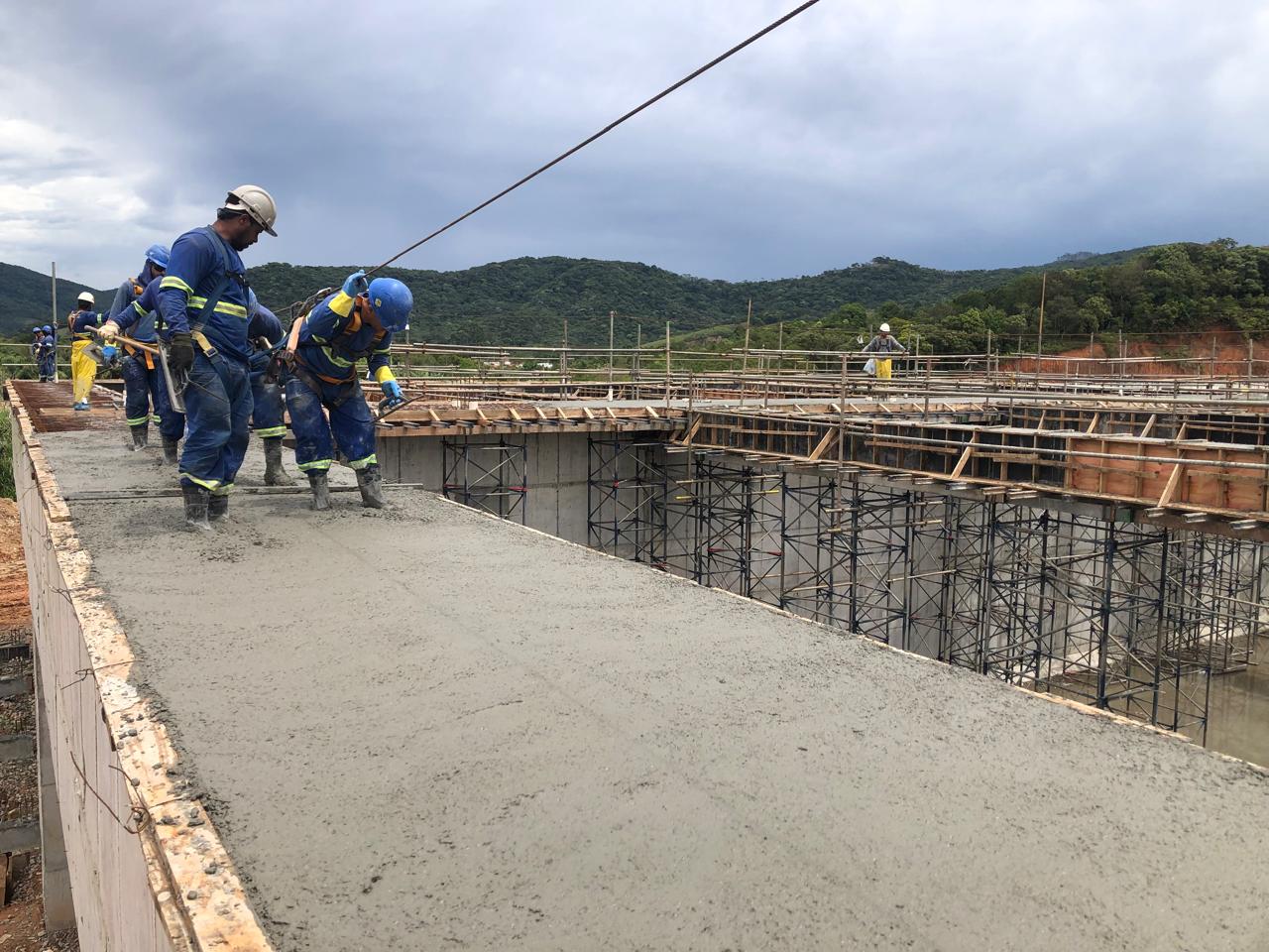 As operações de concretagem também prosseguem, finalizando as estruturas da nova ETE. Na última semana a equipe realizou a concretagem das passarelas e vigas superiores do tanque de aeração 4. Dez caminhões betoneiras depositaram cerca de 88 metros cúbicos de concreto nas estruturas.