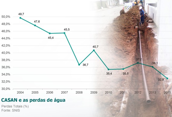 A troca de redes antigas é uma das frentes de trabalho da Companhia para combater as perdas de água nos sistemas de abastecimento, um dos grandes desafios das empresas de saneamento. Atualmente a CASAN tem um índice de 32,9% de perdas, abaixo da média nacional que é de 37%. Há dez anos o índice da CASAN era próximo a 50%.