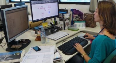 Silvana Banfi (em campo na primeira imagem da sequencia) começou na CASAN trabalhando na rua, abrindo valas para colocação de tubulações de água. Há quatro anos é chefe da agência de Palma Sola ̶ e nessa posição associa o trabalho administrativo e a responsabilidade de prestar um bom serviço de abastecimento ao cuidado com a estrutura física das unidades da Companhia na cidade do extremo Oeste de Santa Catarina. Ela é uma das 11 mulheres em chefias de agência na CASAN. Entre 2.500 funcionários, 441 são mulheres. Em funções administrativas e também operacionais, a participação feminina vem ganhando espaço em um mundo que é em sua maior parte comandado por homens.