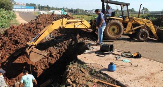 O rompimento da madrugada desta segunda, porém, é mais grave, e está gerando o transtorno atual. A adutora instalada ao longo da rodovia foi escorada durante as obras de duplicação da BR, e suportes se deslocaram com a chuva forte que ocorreu no município, causando problemas na tubulação.