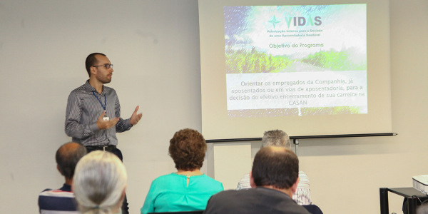 Assim como aconteceu na SRN, na Região Sul o encontro de homenagem permitiu também uma apresentação do Programa VIDAS, realizada pelo psicólogo da UniCASAN Igor Schutz dos Santos. Ele falou sobre o objetivo do Programa, de criar um espaço de reflexão para funcionários que optem por sua aposentadoria, e detalhou de forma breve como será desenvolvido. Com projeto-piloto na Matriz, o projeto deve também ser estendido a todo o Estado.