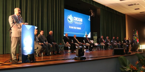 O presidente da CASAN, Valter Gallina, saudou os participantes falando do orgulho em ver o Centro de Eventos Luiz Henrique da Silveira repleto de pessoas preocupadas com o saneamento. E lembrou que a presença do governador do Estado e do vice “mostram a prioridade que o governo de Santa Catarina está dando ao tema”. Gallina afirmou ser uma data histórica para a saúde e qualidade de vida do Estado e do Sul do Brasil. Por isso agradeceu ao Senge o engajamento na parceria: “temos o sonho de transformar Santa Catarina num palco permanente de debate sobre saneamento”.