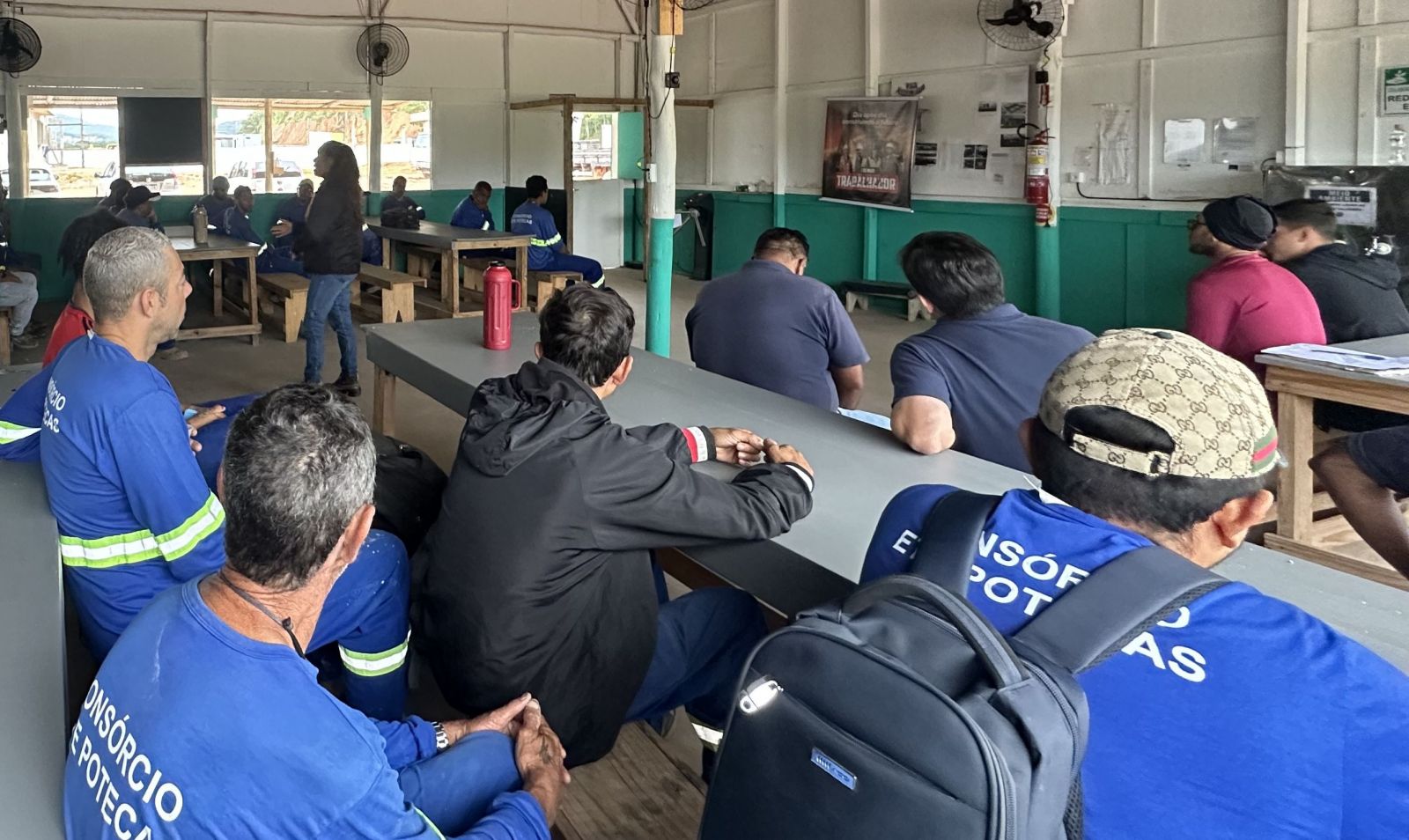 Diariamente, durante os diálogos de segurança, os trabalhadores são orientados a beber bastante água e usar protetor solar, disponibilizado pela construtora. Além de usar os EPIs (Equipamento de proteção individual), que também protegem do sol.