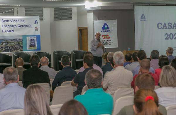 Com o objetivo de alinhar informações sobre a Companhia e preparar a empresa para os próximos anos, a CASAN realizou nesta quinta-feira, 30, em Florianópolis, um Encontro Gerencial que reuniu a Diretoria, os superintendentes e gerentes.