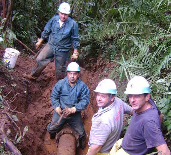 Agora, na última segunda-feira, dia 21, as constantes quedas de energia em função dos temporais causaram o rompimento de uma adutora 200 mm acima da captação no Rio Ditinho. O local era de difícil acesso, fazendo com que nossa equipe tivesse de levar a pé, barranco acima, os equipamentos necessários para o conserto. Mesmo assim, nossos colegas consertaram o cano em menos de 24 horas, iniciando o restabelecimento do sistema.