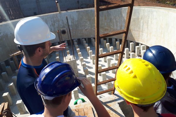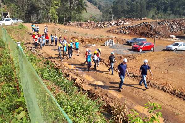 Na manhã desta sexta-feira, 31 de agosto, as equipes da Casan, do Consórcio Trix-Infracon e do Projeto Socioambiental receberam aproximadamente 100 alunos do Ensino Fundamental no canteiro de obras da Estação de Tratamento de Esgoto de Concórdia. O objetivo da visitação foi esclarecer como vai se dar o funcionamento do Sistema de Esgotamento Sanitário que está em implantação no município.