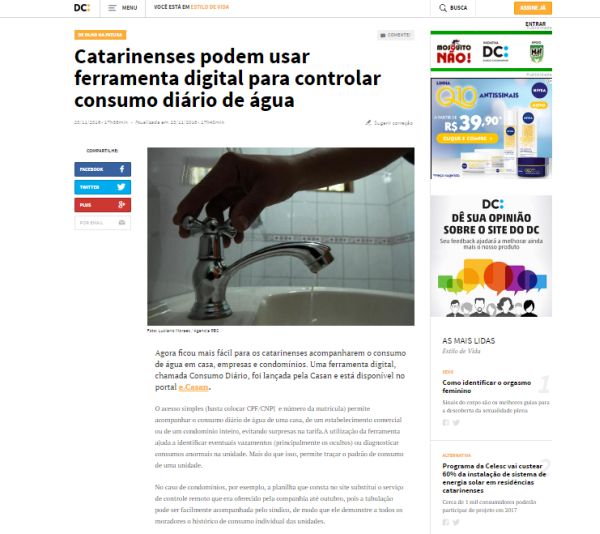 A partir da demanda recebida da CBN, um texto foi produzido para divulgação sobre a interrupção da telemetria – só que antes de falar sobre a interrupção, o release chamou atenção dos usuários da CASAN para acompanhamento de seu consumo de água no portal Ecasan, com o uso da ferramenta “Consumo Diário”.