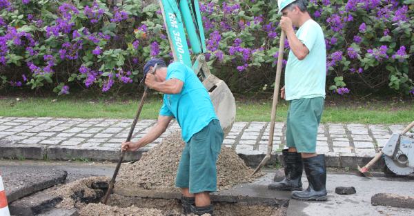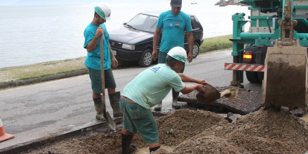 Conserto de rompimento no bairro Cacupé, Norte da Ilha. Neiva Daltrozo / Divulgação CASAN