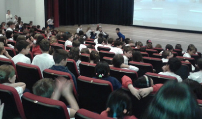 Durante o encontro os estudantes também receberam informações sobre os mananciais que abastecem Florianópolis. “O desafio é despertar nas crianças e em suas famílias mudanças de atitude em relação ao uso da água e cuidados com o meio ambiente”, complementa Karine. As palestras foram realizadas no auditório do CEMJ, para alunos do 3° ao 6° ano, que neste ano letivo que estão aprendendo sobre a importância de preservar os recursos hídricos.