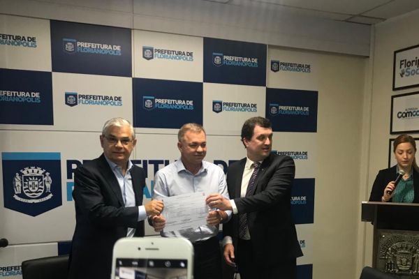 Com a presença de toda a Diretoria e de inúmeros funcionários dos setores administrativos e operacionais, o governador Eduardo Pinho Moreira, o prefeito de Florianópolis, Gean Loureiro, e o presidente da CASAN, Adriano Zanotto, assinaram na manhã desta terça-feira a Ordem de Serviço para a duplicação da Estação de Tratamento de Esgoto (ETE) Insular e lançaram o Edital do Sistema de Esgotamento Sanitário (SES) Saco Grande-João Paulo. As duas obras, aguardadas há muitos anos pelo corpo técnico da empresa, somam investimentos de R$ 190,7 milhões para beneficiar 18 bairros da Capital.