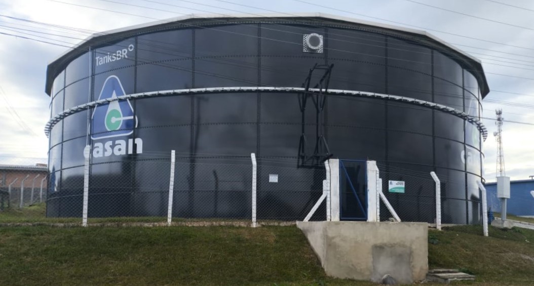 Reservatório instalado em Urubici, com estrutura de aço vitrificado. Foto: Acervo CASAN.