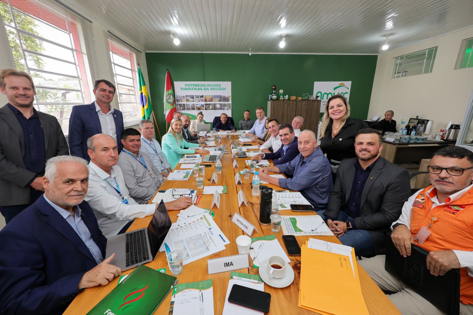 Reunião com governador, prefeitos e autoridades na sede da AMURC, com presença do presidente Edson Moritz e do diretor de Operação e Expansão, Pedro Joel Horstmann. Foto: Roberto Zacarias/SecomGOVSC.