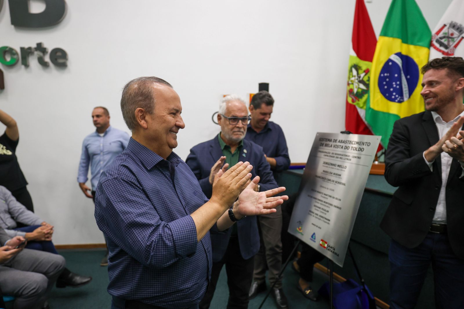 Destacando os trabalhos nas áreas de saúde, infraestrutura e segurança pública, entre outras, o governador citou também as melhorias no saneamento de Santa Catarina. “A CASAN vive um novo momento. Sobre os investimentos que entregamos aqui hoje, os prefeitos precisam comemorar e mostrar o que a melhoria da infraestrutura de abastecimento significa para a sua cidade”, ressaltou o governador. “Estamos também estudando muito sobre o que fazer para aumentar os serviços de coleta e tratamento de esgoto no Estado, para cumprir o Marco do Saneamento e garantir mais saúde para as pessoas”, complementou.
