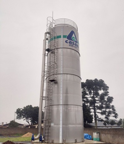 Reservatório de Aço Inoxidável em Irineópolis. Foto: Acervo CASAN.