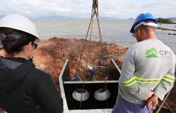 As 15 grandes estruturas de concreto, com pesos que variam de 15 toneladas a 60 toneladas, vão acondicionar as válvulas que evitarão a saída de água poluída com esgoto para o mar e a entrada da água da Baía no sistema de despoluição. As operações de içamento serão realizadas até dezembro.