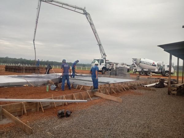 Concretagem da base da ETE. Fotos: Gerência de Construção