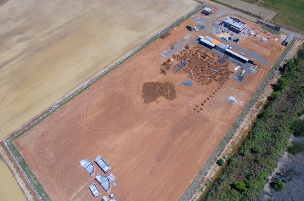 Imagens aéreas do local de construção da ETE Forquilhinha. Acervo CASAN