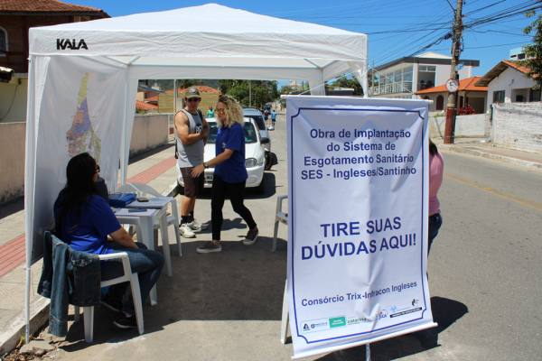 Nesta quarta-feira (29/11), a ação semanal promovida pela equipe sociambiental do Consórcio Trix-Infracon (responsável pela execução das obras da CASAN de ampliação do Sistema de Esgotamento Sanitário Ingleses/Santinho) acontece na Estrada Vereador Onildo Lemos, nº41 (início da via que dá acesso ao Santinho). Os profissionais estarão no local para orientar a população entre 8h e 16h.