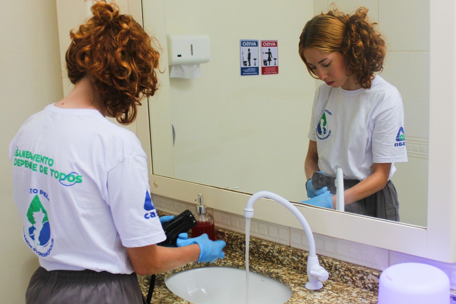 Uma das ações mais recentes aconteceu em um centro comercial com cinco lojas, no Kobrasol. Durante a inspeção foram realizados testes com corante alimentício nas pias, vasos e ralos para verificar se o líquido estava indo para o destino correto.