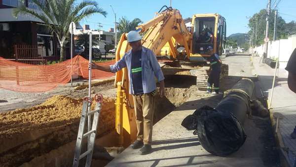 Em Rio do Sul a CASAN também executa obras para implantação de emissário (tubulação de maior diâmetro) na rua São José, bairro Santana.