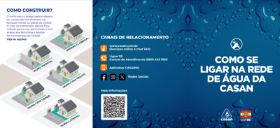 O solicitante deve formalizar o pedido de Ligação de Água/Esgoto no Atendimento Presencial da CASAN do Município (Agência ou Posto de Atendimento) ou pelo Atendimento Online – munido, preferencialmente, de uma fatura de água/esgoto do imóvel mais próximo (vizinho), para facilitar a localização da nova ligação. Neste momento, serão repassadas as informações técnicas (folder e gabarito) para construção do Abrigo de Proteção do Cavalete e Alimentador Predial com registro.
