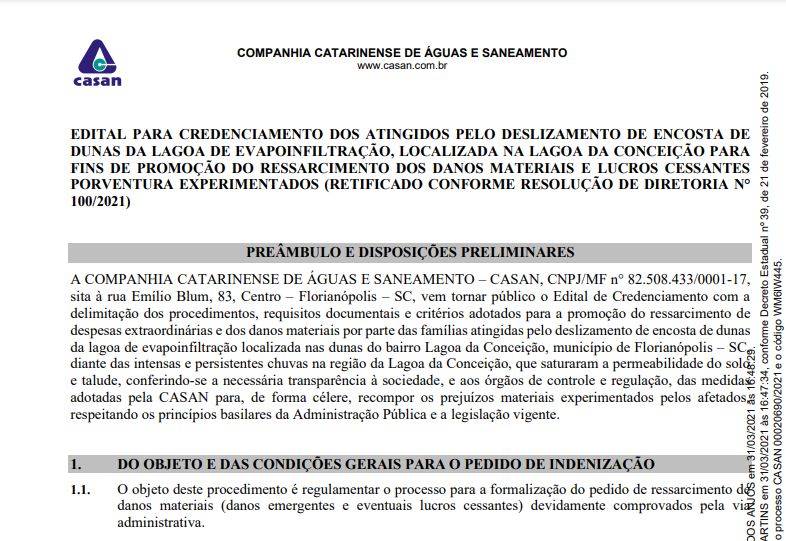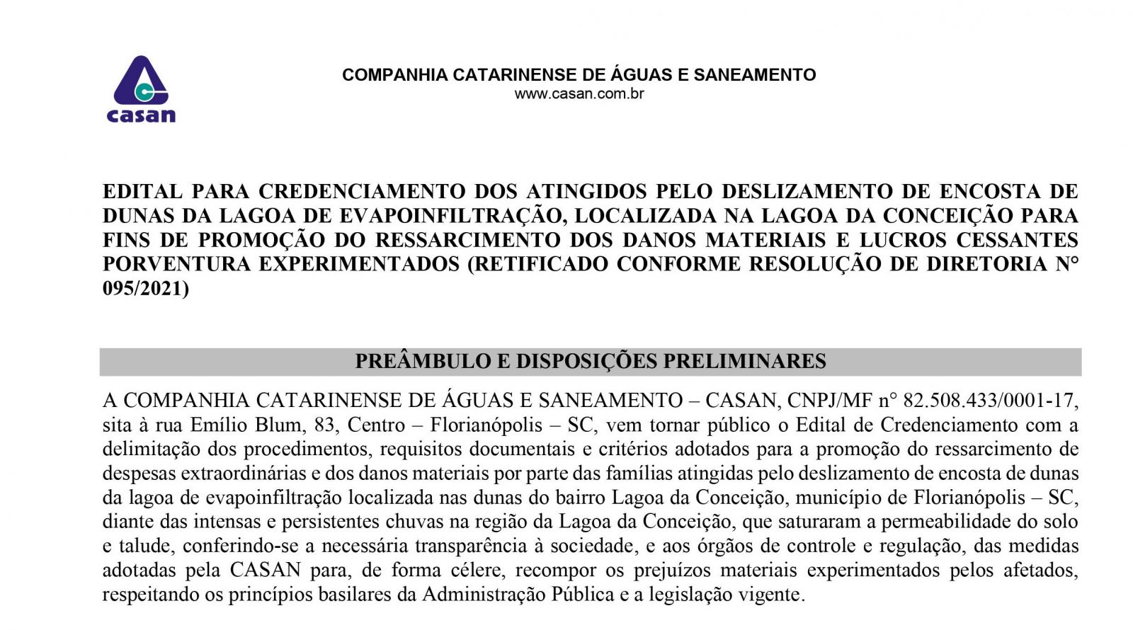 Edital para Fins de Ressarcimento de Danos Materiais e Lucros Cessantes- Resolução N° 095/2021 retifica anteriores