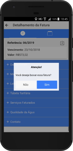 Além disso, o usuário recebe avisos sobre interrupção no abastecimento de água em sua região e pode visualizar o histórico do volume de água fornecido
