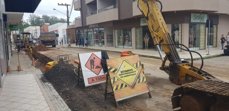 Após receber rede de saneamento, área central de Lauro Müller é preparada para repavimentação