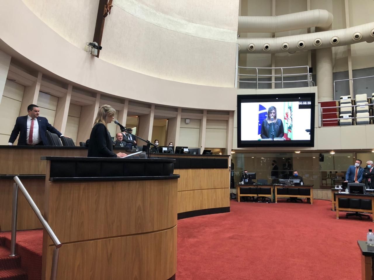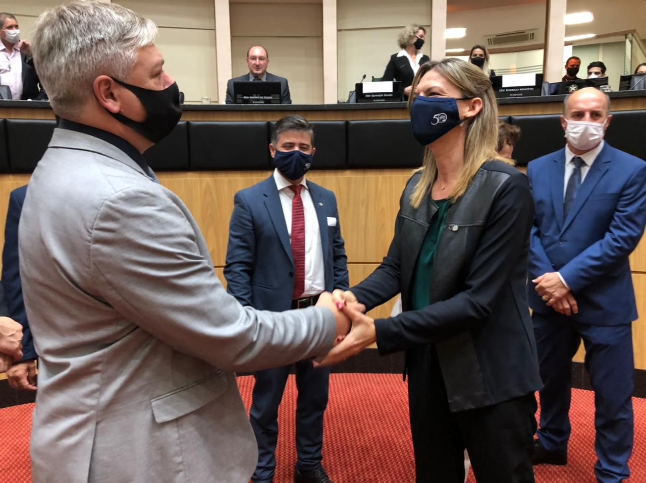 Ada De Luca (MDB): “Quero cumprimentar a Roberta, pois sei que não é fácil para uma mulher dirigir a Companhia Catarinense de Águas e Saneamento. Cumprimentando a Presidente, reconheço também o trabalho de ex-dirigentes que ajudaram a recuperar a economia e a credibilidade da empresa. Como mulher de um ex-presidente (Walmor De Luca) acompanhei essa luta e esse sacrifício de perto e sei o seu devido valor. Parabéns a todos os funcionários que passaram ou estão atualmente na empresa”.