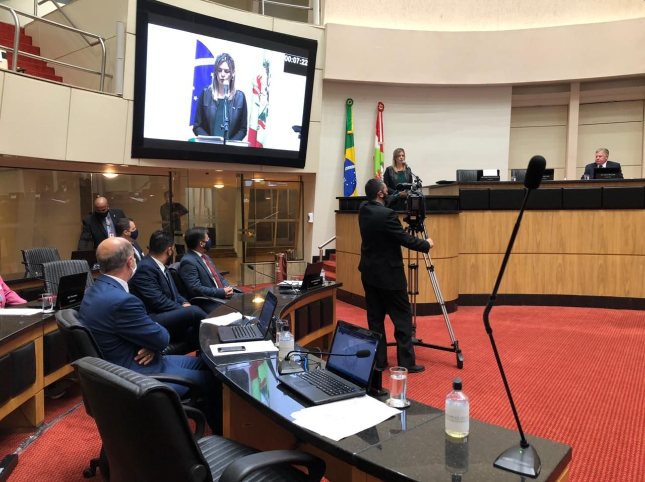 “Com as economias obtidas e total apoio do Governo do Estado, estamos realizando grandes obras dentro da meta do Planejamento Hídrico, como o Projeto Rio Chapecozinho, e investindo mais de R$ 1 milhão para recuperar o atraso na cobertura da coleta e tratamento de esgoto no Estado”, disse Roberta que, ao final do ato, entregou uma Placa alusiva ao Cinquentenário ao Presidente da Assembleia, Mauro de Nadal, que presidiu a sessão.