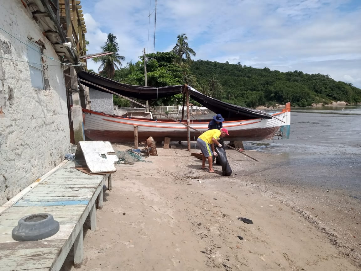 Coleta de resíduos: Rancho de Pesca do Di, na praia do João Paulo, à direita do trapiche entrando pela Servidão Nonô, às 9h30