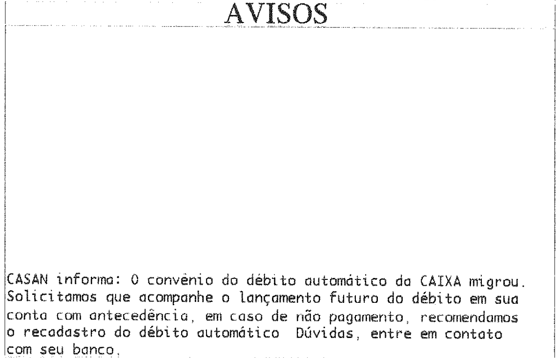 Aviso que virá na fatura deste mês aos usuários, referente ao convênio do sistema de débito automático com a Caixa Econômica Federal. Foto: Acervo CASAN.